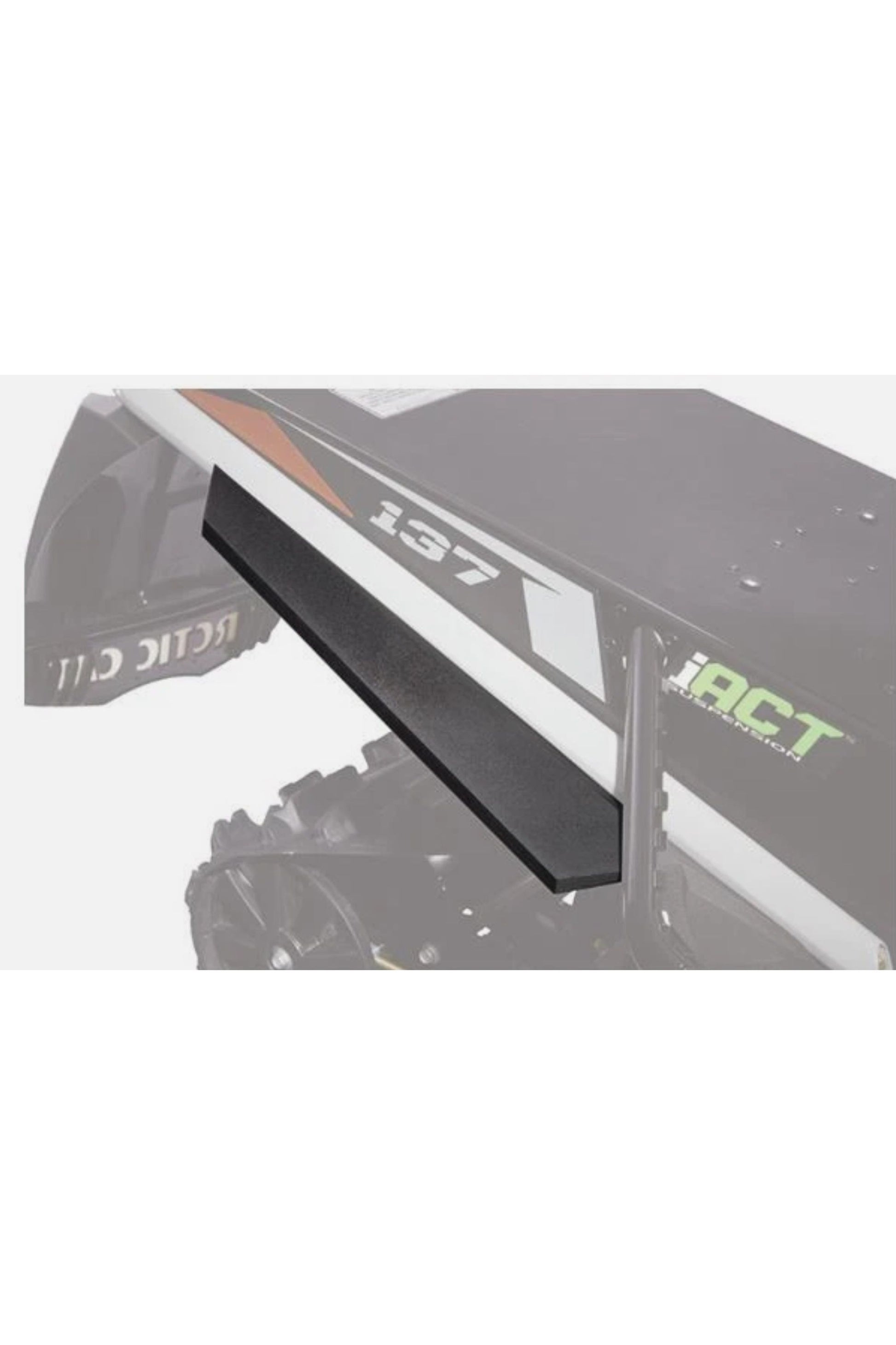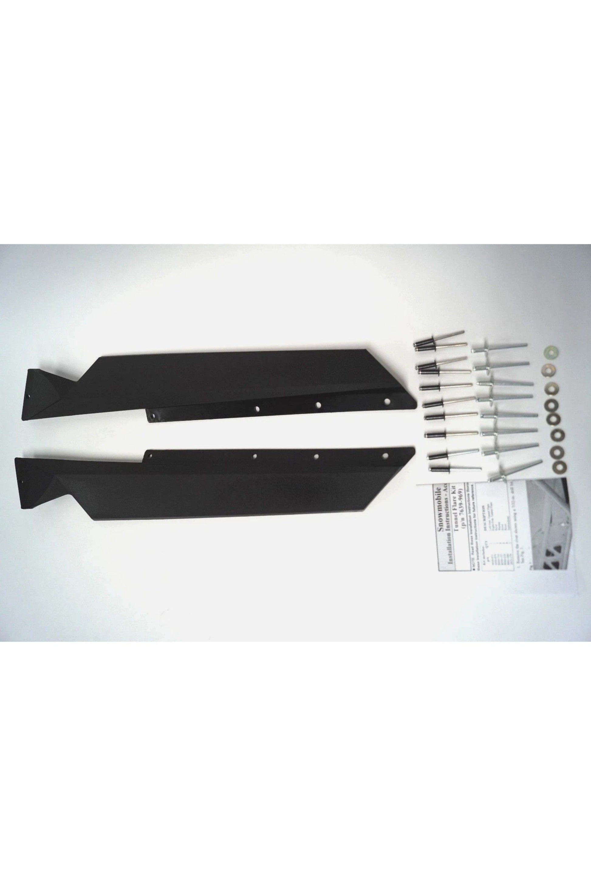 One new OEM Arctic Cat black rear tunnel flare kit, part number 7639-969. This kit helps eliminate snow spray from being thrown up on the rider. Mounting hardware and instructions included.